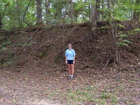 We later came upon the old trace again and I took a picture of Mark Kay against the bank of the trace. You can see how much the trace sank in this area.